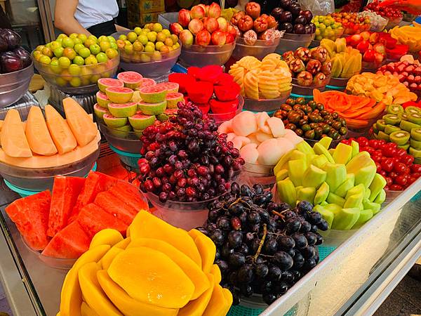 一出地鐵站,就能看到好多水果攤,各式各樣現切水果,鮮豔的很吸引人,要什麼水果自己夾,價格是稱重的,一斤15元人民幣,也可以來杯水果汁,可選兩種水果,每杯20元人民幣