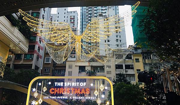 每年英國倫敦攝政街的閃爍燈飾和濃濃的聖誕氣氛都好吸引人,今年在香港就可以感受啦!灣仔利東街首次和攝政街合作,將原汁原味的英倫聖誕氣氛搬來香港~ 時間:2018.11.16 - 2018.12.31 灣仔/利東街利東街的天空佈滿了美麗的天使燈飾,滿街的樹上也都掛上燈飾化身為閃亮的聖誕樹唷!🎄 樂樂建議大約五點前來欣賞,燈飾點亮加上飄雪時的氣氛最好~ 搭配兩旁歐洲風的建築,這邊也有好多外國人,有瞬間疑惑自己是不是到了優雅的歐洲啦~ 還有樂隊現場演奏,可以一邊欣賞美麗的景,一邊環繞在樂聲中~ 每天下午5點和7點整,還有5分鐘左右的夢幻飄雪活動,雖然知道是人工造雪,但看到飄雪的時刻還是好興奮啊~❄️ 街道旁的牆壁還有飛翔的翅膀可以拍照唷,也是個熱門的拍照景點~