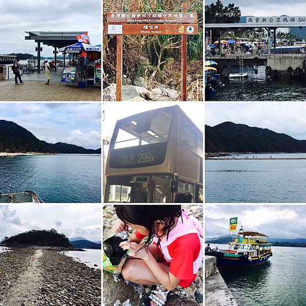 為了擺脫家人對香港都是高樓大廈的印象,這次特地帶家人來被譽為「香港後花園的西貢」郊遊踏海啦~ 原本查網路是要從沙田搭地鐵到鑽石山站後,再轉搭巴士到西貢的,在地人阿棠一聽到我規劃的路線,立即翻白眼說,沙田商場樓下就有「 299x 」巴士直達西貢啦😂 從沙田到西貢的巴士車程大約半小時,剛好大家吃飽可以休息小眠一下,然後醒來下車就在西貢碼頭對面了~ 碼頭沿岸有好多小攤在賣遊船行程,我們就隨意挑了「貓記」的直達地質公園來回, 每人HK$30元,也有多景點的組合行程可以選唷~ 賣票的大姐一直提醒我們17:30是最後一班回來的船,一定要記得啊!不然就要在小島上等到明天才能回來了😆不過好像每家的晚班船時間都不一樣~等船的空檔發現旁邊有雪糕車,樂樂眼睛馬上發亮,開心地衝去買冰淇淋啦~ 貓記的船有兩層,我們選擇露天的上層,吹著海風前往地質公園去~ 比較可惜前幾天剛好颱風山竹過境,岸邊的樹木都被吹倒了,不然一定很有渡假小島的氛圍~